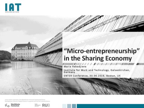 "Micro-entrepreneurship" in the Sharing Economy Date: 30.06.2016Where: Boston College, Boston, UKEvent: ENTER Final ConferenceOrganizer: Boston CollegeSpeaker:Maria RabadjievaResearch department: Innovation, Space & CultureProject:ENTER / Enter to entrepreneurship Open PDF