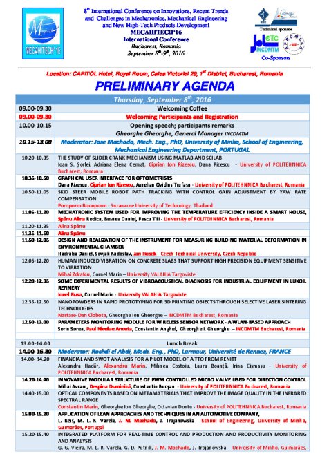 8th International Conference on Innovations, Recent Trends and Challenges in Mechatronics, Mechanical Engineering and New High-Tech Products Development – MECAHITECH‘16