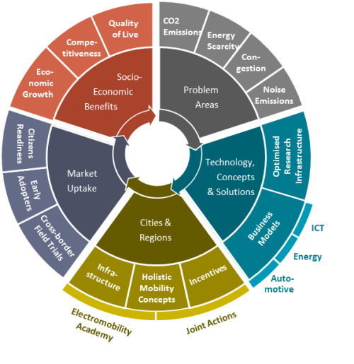 Figure 1: Multilevel RTDI Circle for Electromobility in Cities and Regions