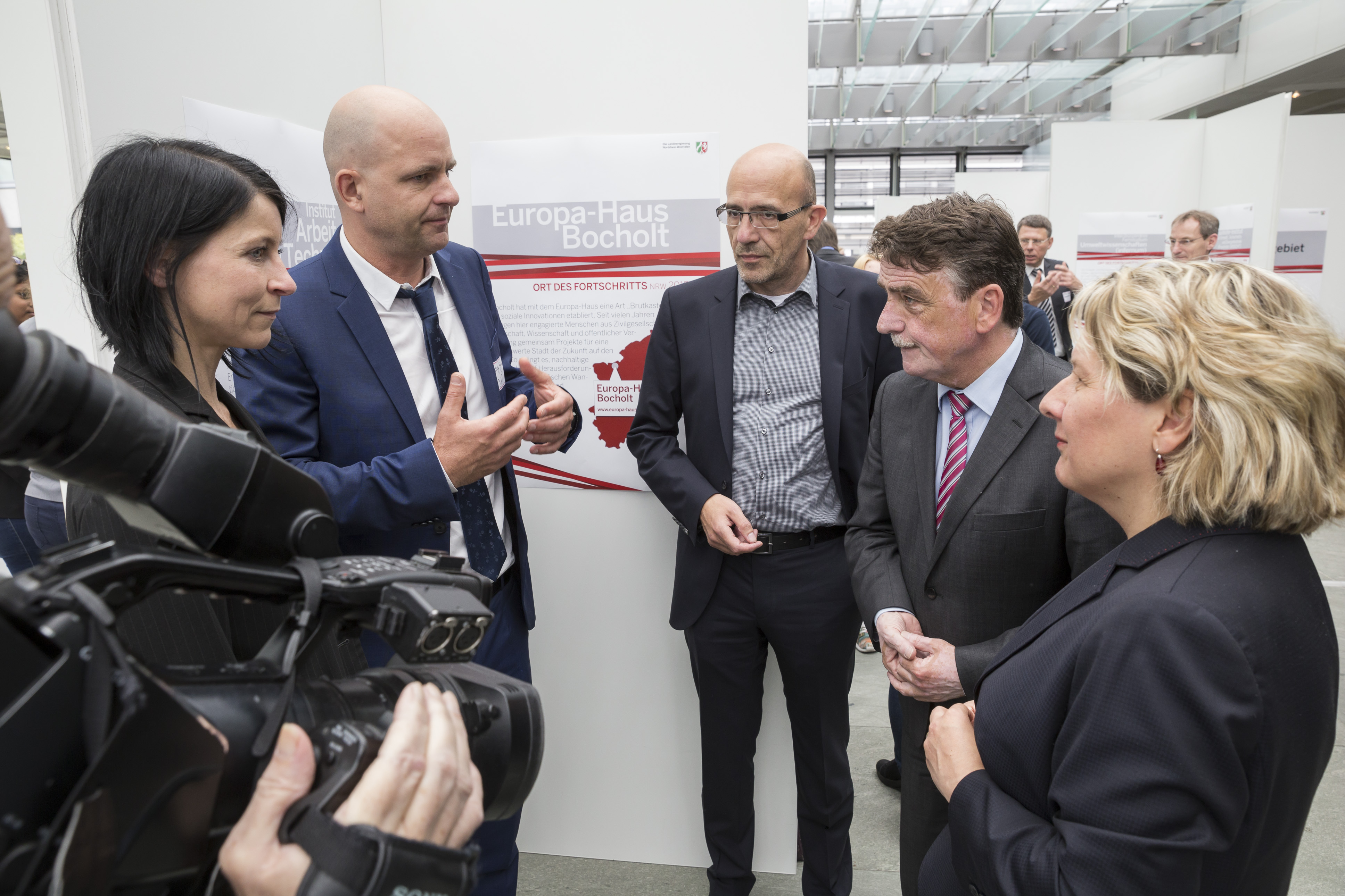 Zum ersten Netzwerktreffen der bestehenden und der 31 neuen „Orte des Fortschritts“ fahren die IAT-Wissenschaftler Judith Terstriep und Dr. Stefan Gärtner nach Düsseldorf. Die offizielle Urkunde wird später durch die Minister persönlich in Gelsenkirchen-Ückendorf an IAT-Direktor Prof. Dr. Josef Hilbert überreicht.