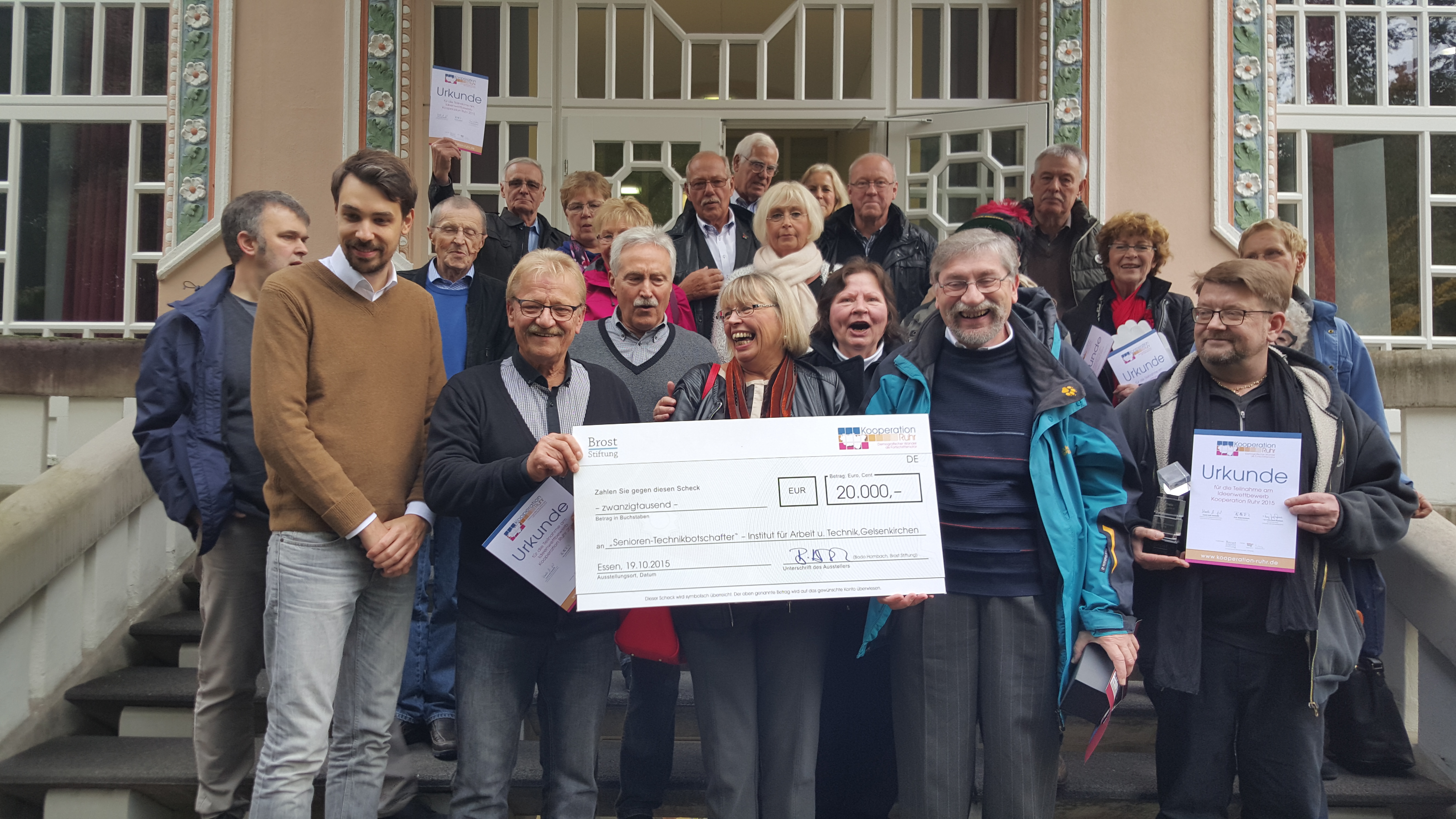 Dieser Ansatz wurde jüngst im Ideen-Wettbewerb Kooperation-Ruhr „Demografischer Wandel als Fortschrittsmotor“, ausgerichtet von der Brost-Stiftung, mit einem zweiten Platz ausgezeichnet. Das Preisgeld von 20.000 EUR wird dazu genutzt, die Arbeit der Botschafter weiter voranzutreiben und die Kooperation mit bestehenden und neuen Partnern auszubauen.
