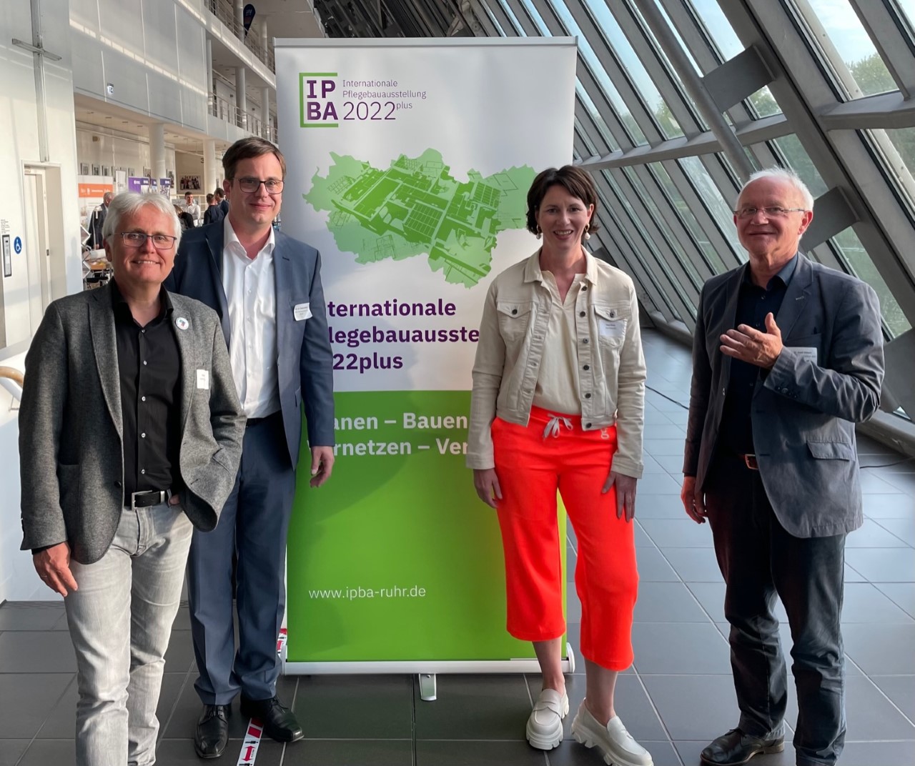 In Anlehnung an die IBA Emscher-Park initiiert ein Partnernetzwerk rund um die Ruhrgebietskonferenz-Pflege ein neues „Dekadenprojekt“ für das Revier. Am 05. und 06. Mai fand der Auftakt im Wissenschaftspark Gelsenkirchen statt. „Das Ruhrgebiet braucht Qualität in der Fläche! Gute Gesundheits- und Pflegeimmobilien können der Schlüssel sein, um städtebauliche und architektonische Qualität in jeden Stadtteil und jedes Quartier zu bringen. Das bietet den älteren Menschen Wohnzukunft vor der Haustür und stiftet Aufbruchstimmung in den Nachbarschaften des Reviers“, fasst Prof. Torsten Bölting von der EBZ-Business School – University of Applied Sciences in Bochum die Zielsetzung der Internationalen Pflegebauausstellung 2022plus zusammen. Gemeinsam mit Tanja Ehret von CareTRIALOG, Prof. Josef Hilbert vom Institut Arbeit und Technik und MedEcon Ruhr sowie Roland Weigel von der Ruhrgebietskonferenz-Pflege hat er am vergangenen Donnerstag die Ziele und Inhalte der Pflegebauausstellung vorgestellt.