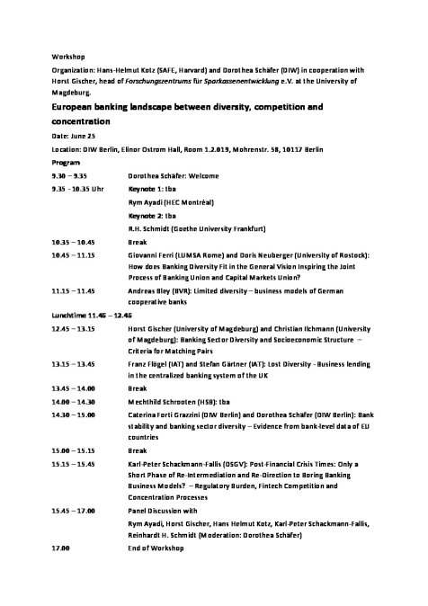 Hans-Helmut Kotz (SAFE, Harvard) und Dorothea Schäfer (DIW) in Kooperation mit Horst Gischer, Leiter des Forschungszentrums für Sparkassenentwicklung e.V. der Universität Magdeburg